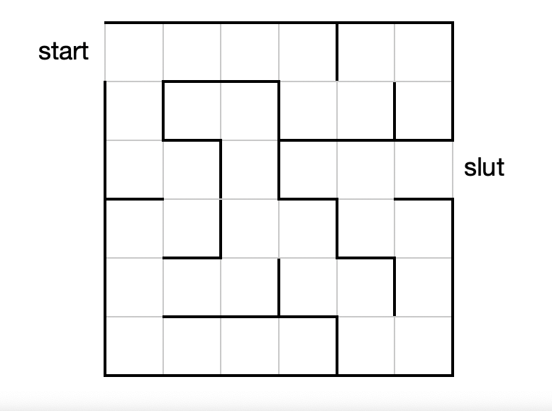 Nedenstående figur viser en labyrint. Den kan modelleres som en graf ved at lave en knude for hvert felt og en kant mellem to felter hvis man kan gå imellem dem.